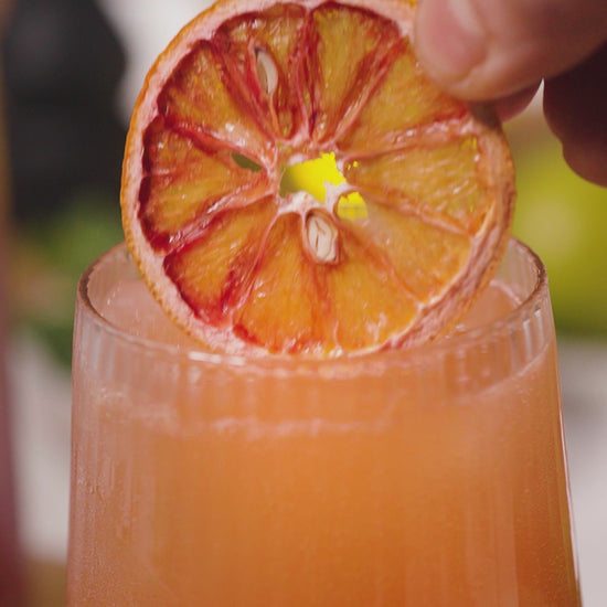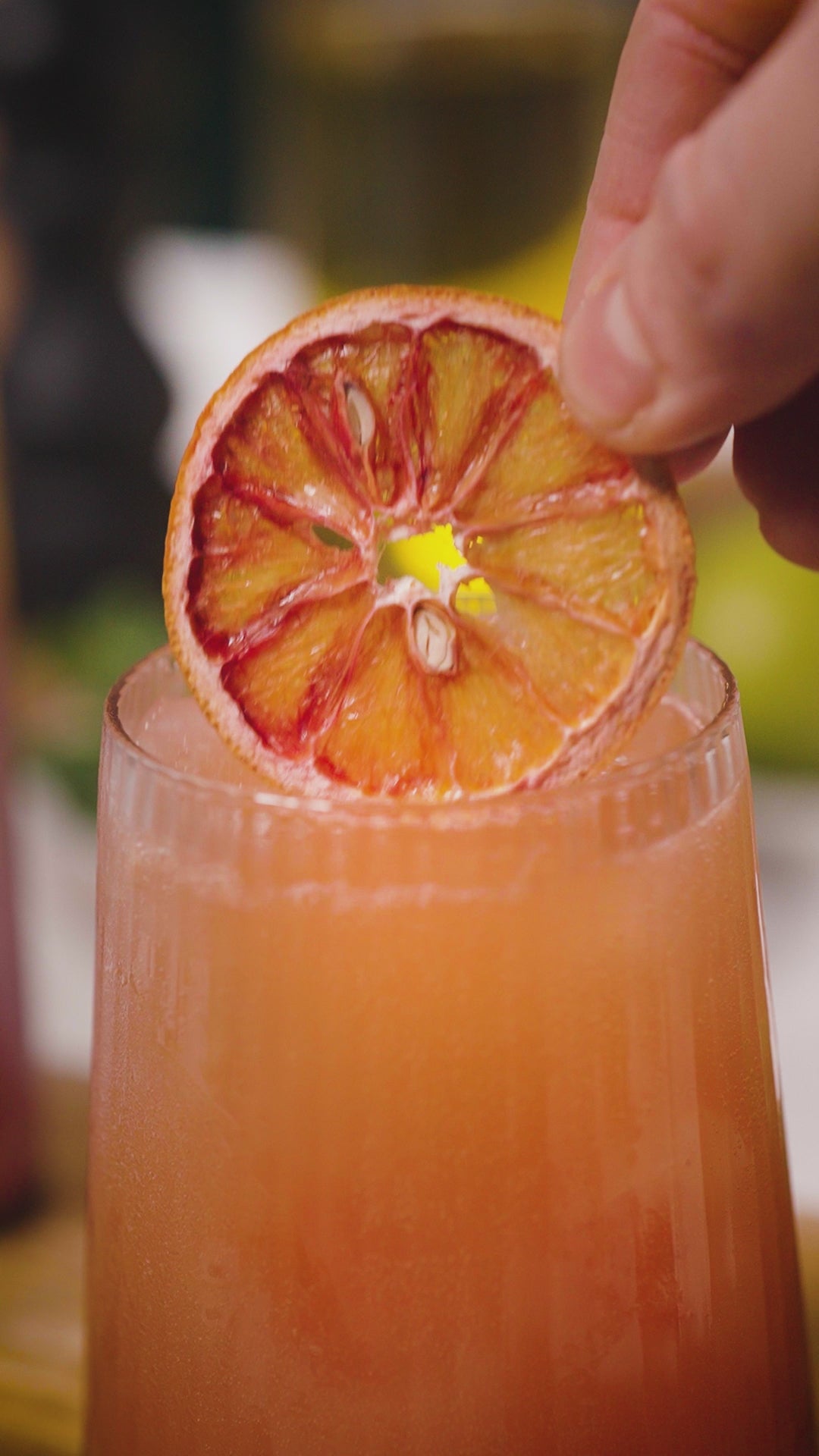 5. Garnish with mint leaves, the dehydrated blood orange slice & serve!